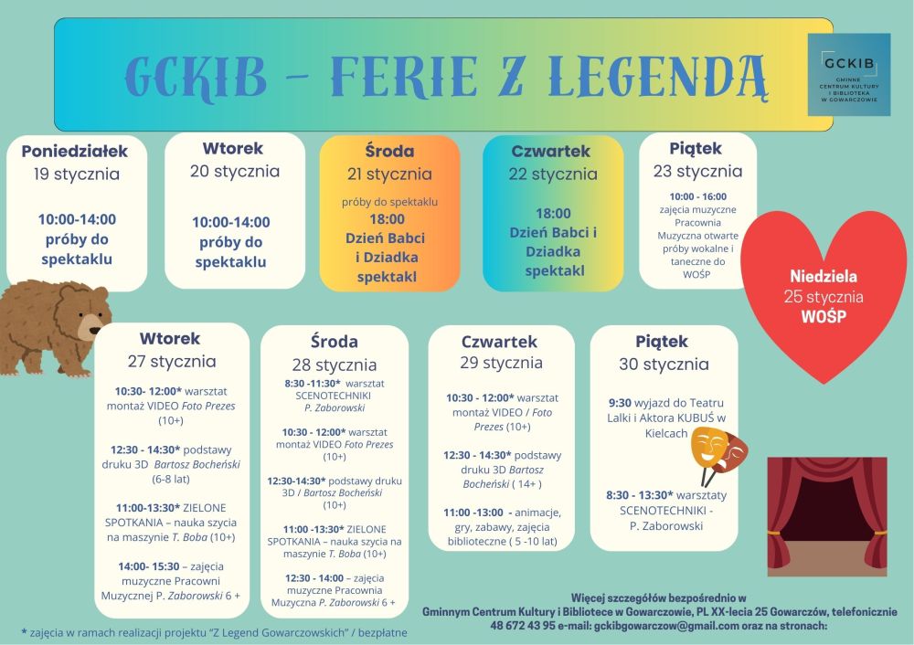 Jak co roku, nasz region ma ciekawą ofertę dla dzieci i młodzieży w okresie ferii zimowych tj. w dn. 19 stycznia-1 lutego 2026.