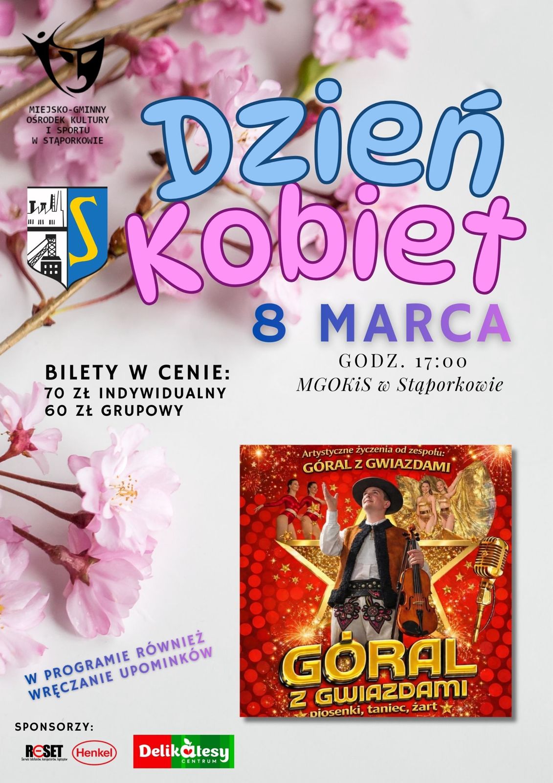 Miejsko-Gminny Ośrodek Kultury i Sportu w Stąporkowie zaprasza na spotkanie z okazji Dnia Kobiet, oczywiście w dniu 8 marca! Z koncertem wystąpi Góral z gwiazdami!