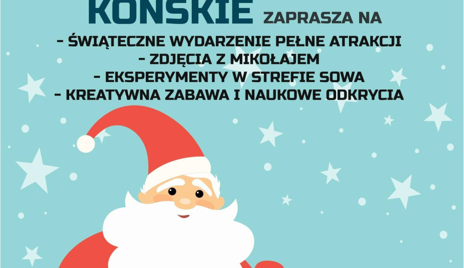 Święty Mikołaj zawita też do Końskich. Będzie czekał na dzieci (i nie tylko) z Strefie Odkrywania Wyobraźni i Aktywności w Końskich w niedzielę 7 grudnia!