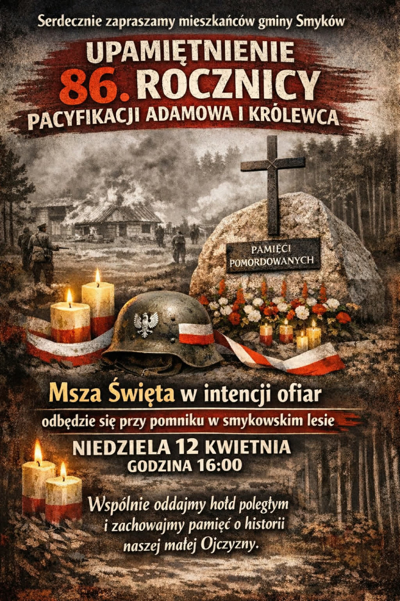 Tradycyjnie, w pierwszą niedzielę po Wielkanocy, mieszkańcy gminy Smyków spotkają się, aby upamiętnić poległych podczas pacyfikacji Adamowa i Królewca w 1940 roku.