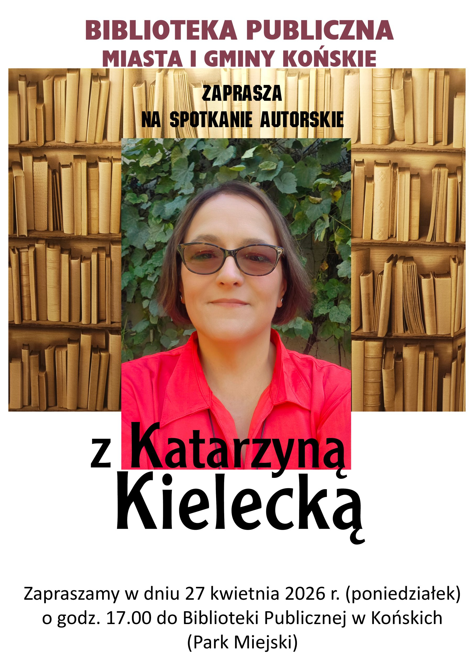 Katarzyna Kielecka, autorka powieści, wierszy i bajek dla dzieci będzie gościem Biblioteki Publicznej Miasta i Gminy Końskie. Spotkanie autorskie odbędzie się w dniu 27 kwietnia (poniedziałek) w Bibliotece w Parku Miejskim w Końskich (ul. Partyzantów 1). Początek o godz. 17:00, wstęp wolny!